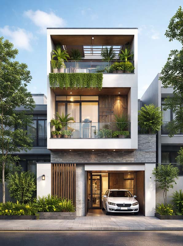 Bên cạnh đó, xu hướng “sống xanh – sống chậm” năm 2026 khiến nhu cầu về sân thượng, không gian thư giãn ngoài trời ngày càng gia tăng. Đây là điểm cộng lớn mà nhà phố 2 tầng mái truyền thống khó có thể đáp ứng trọn vẹn.