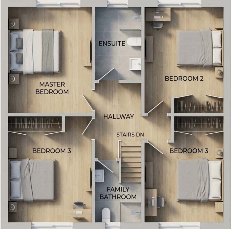 Tầng 2 là không gian dành cho các phòng ngủ. Phòng ngủ master thường đặt phía trước, có ban công và WC khép kín. Phòng ngủ con bố trí phía sau, đảm bảo an toàn và yên tĩnh cho học tập.