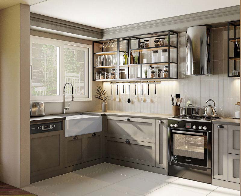 Thiết kế nội thất nhà bếp 10m² với tủ bếp chữ L