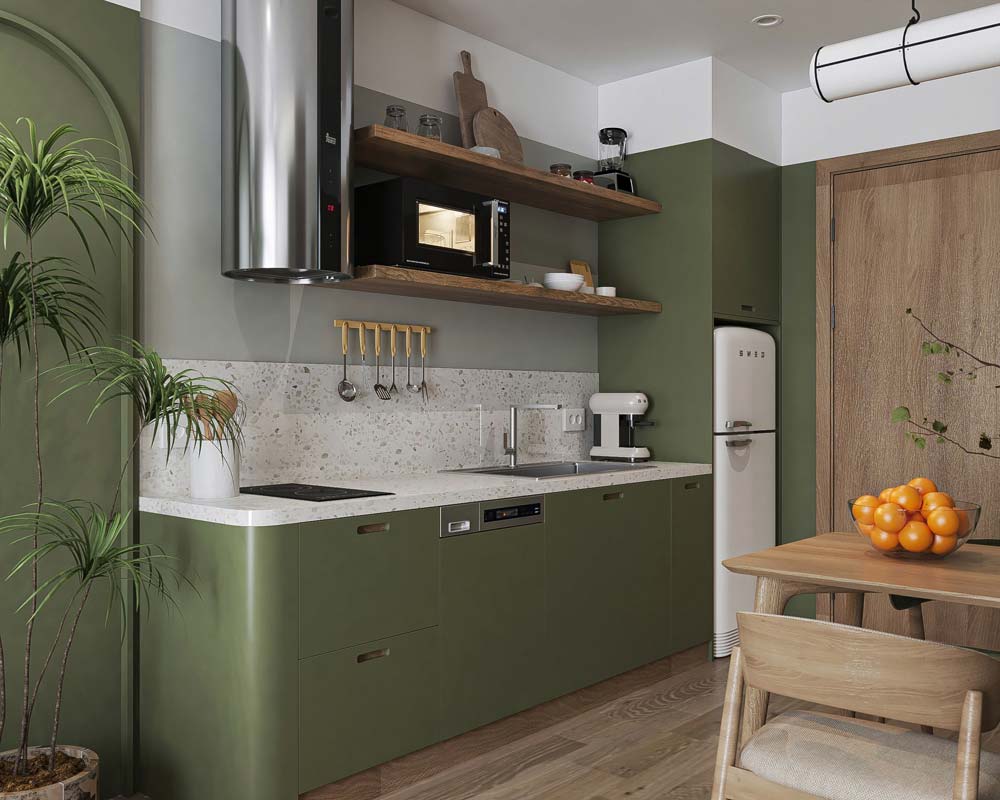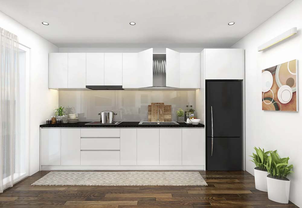 Bố trí nội thất nhà bếp 12m² với tủ bếp chữ I