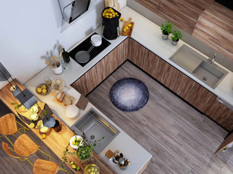 Sàn bếp cần ưu tiên vật liệu chống trơn trượt như gỗ, gạch nhám hoặc nhựa PVC giả gỗ nhằm đảm bảo an toàn trong quá trình sử dụng.
