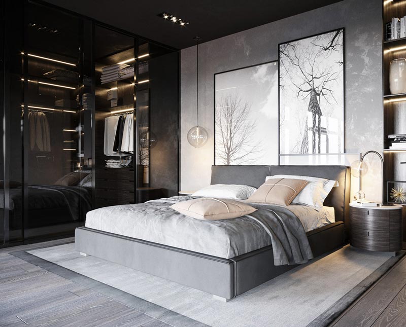 Khi được kết hợp cùng nội thất hiện đại, tranh trừu tượng giúp phòng ngủ trở nên sang trọng và cá tính hơn.