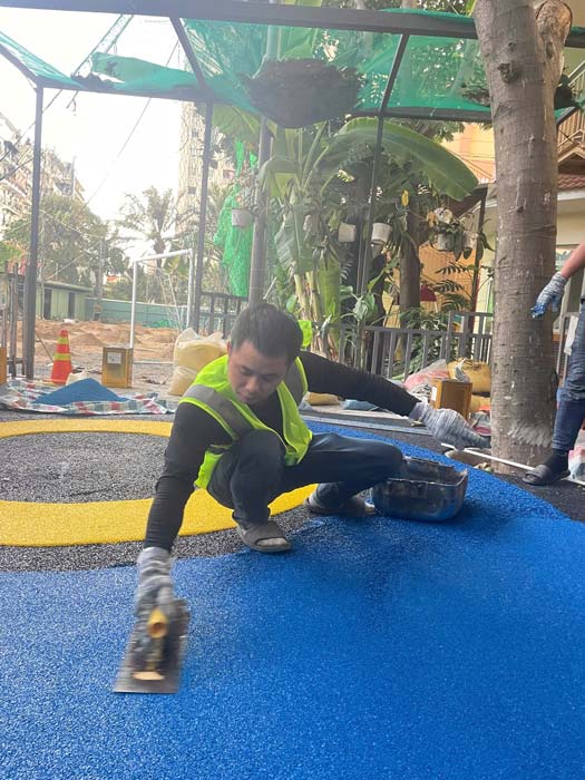 Dự án Sàn EPDM – Trường mầm non Quận 2Hạng mục: Thi công sàn cao su EPDMChủ đầu tư: Công ty TNHH Ứng dụng Công nghệ Xây dựng Toàn CầuĐịa chỉ: Quận 2, Tp.HCMDiện tích: 40m²