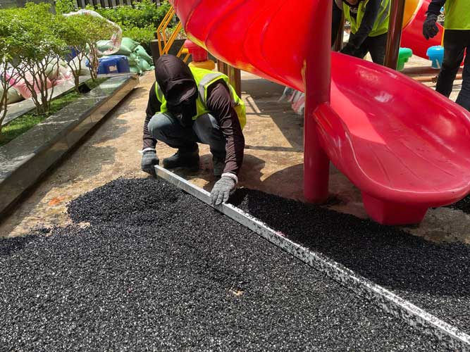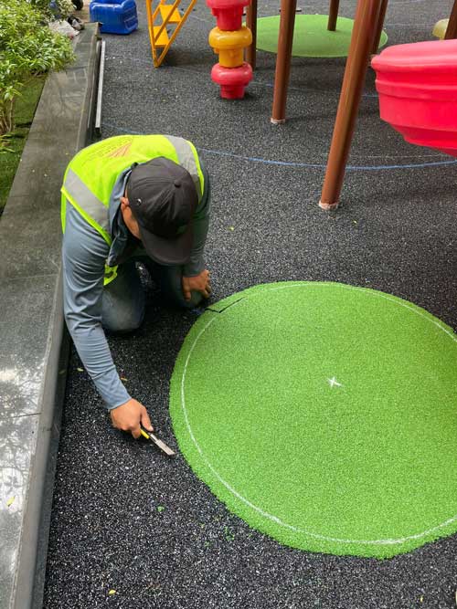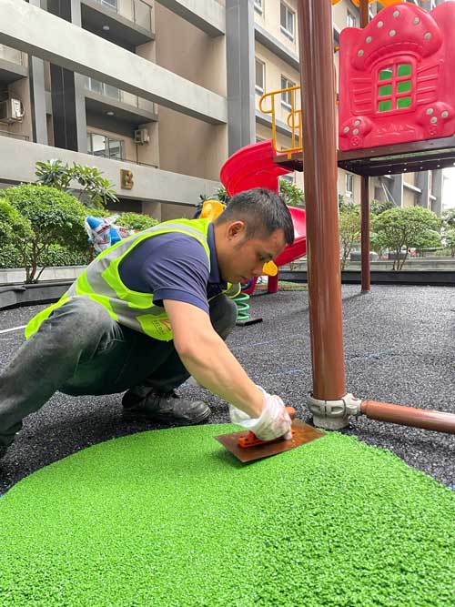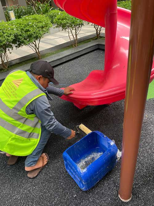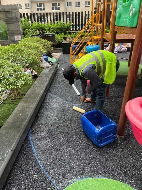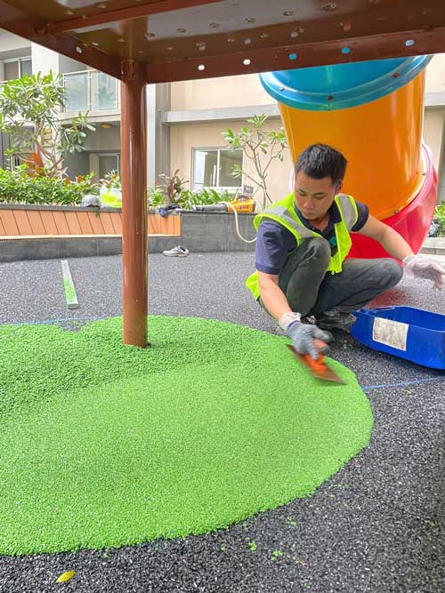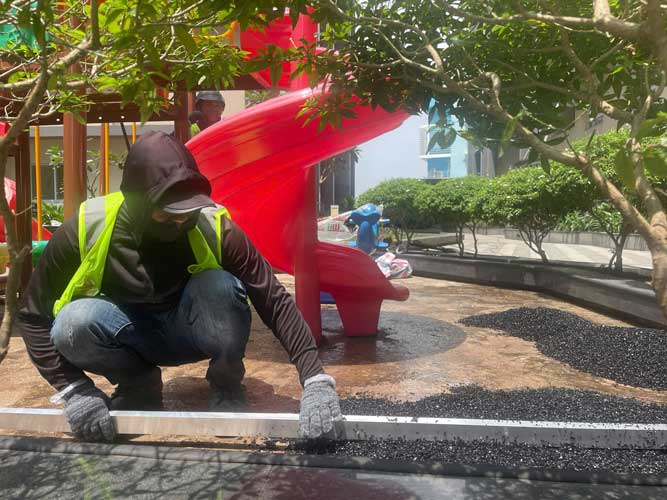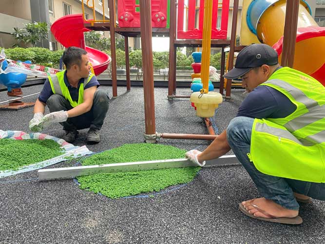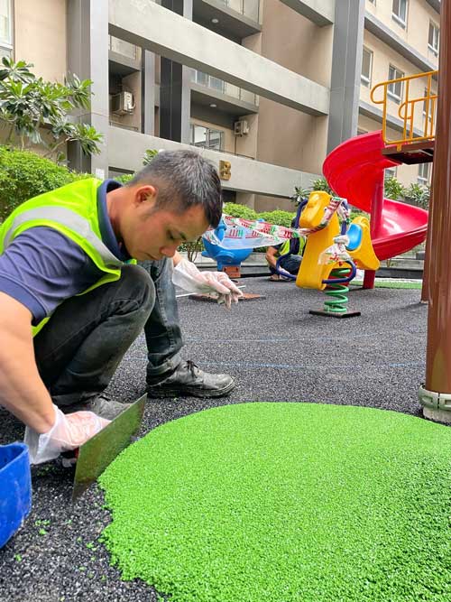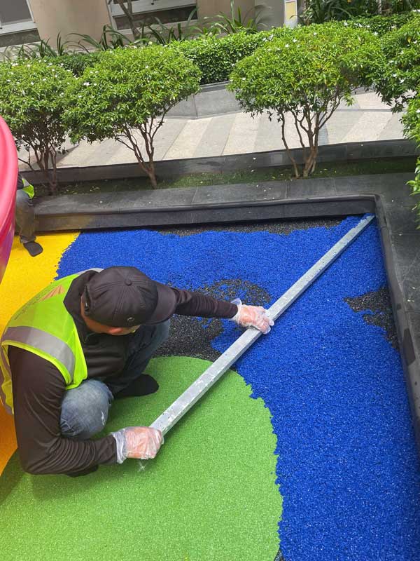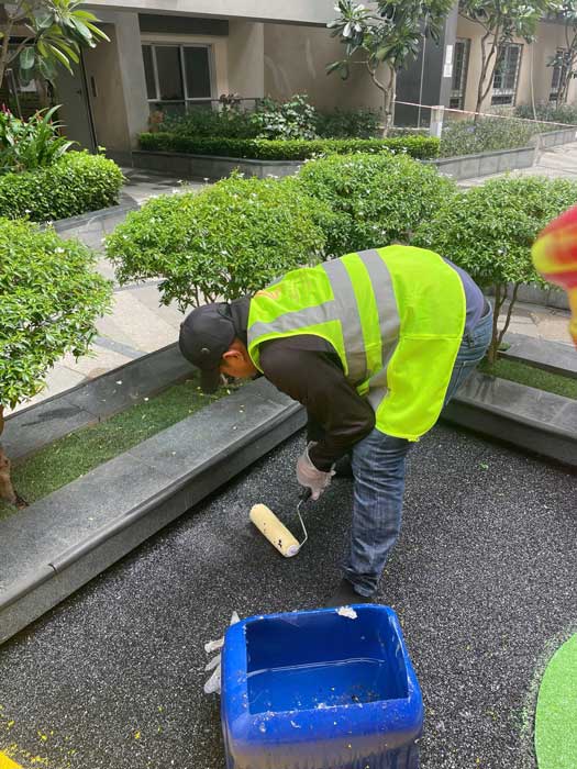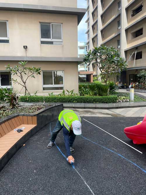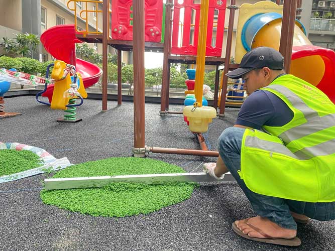 Dự án chung cư Cosmo City Quận 7 Hạng mục: Thi công sàn cao su EPDM Chủ đầu tư: Công ty TNHH SX TM DV và Trang trí nội thất Văn Nam Địa chỉ: 99 Nguyễn Thị Thập, Quận 7, Tp.HCM Diện tích: 55m²