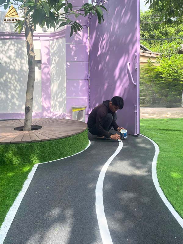 Hạng mục: Thi công sàn cao su EPDM màu dày 13mm Chủ đầu tư: Công ty cổ phần đầu tư và phát triển An Thịnh Phát Địa chỉ: 52 Trần Ngọc Diện, Phường An Khánh, Tp.HCM Diện tích: 40m²