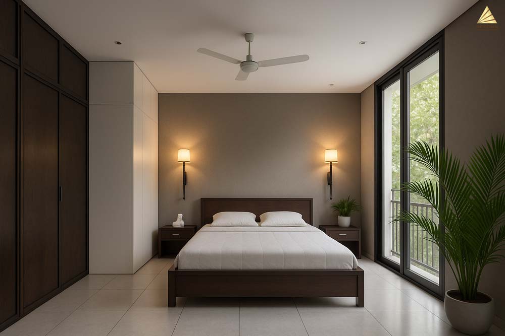 Mẫu thiết kế nội thất phong cách hiện đại – tối giản, là sự kết hợp tinh tế giữa thẩm mỹ đương đại và công năng sử dụng tối ưu. Tổng thể không gian sử dụng các gam màu trung tính như xám, be và nâu ấm – tạo nên cảm giác thanh lịch, ấm cúng nhưng vẫn toát lên sự sang trọng. Cách bố trí ánh sáng tự nhiên thông qua hệ cửa kính lớn giúp không gian thêm phần thoáng đãng và dễ chịu.