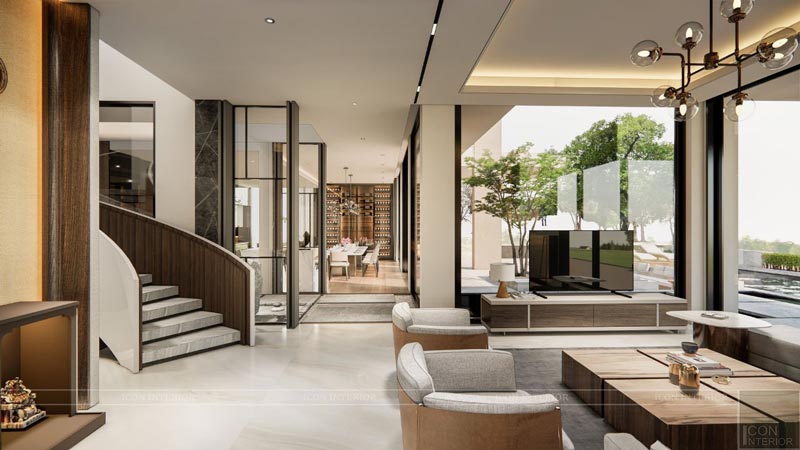 Ngoài ra, việc sử dụng cửa kính lớn hoặc cửa sổ rộng cũng giúp không gian trở nên thông thoáng và gần gũi với thiên nhiên.