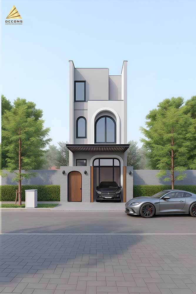 Mẫu nhà phố 3 tầng này chinh phục mọi ánh nhìn nhờ sự kết hợp độc đáo giữa kiến trúc hiện đại tối giản và điểm nhấn vòm mềm mại mang hơi hướng cổ điển. Tổng thể công trình là sự hòa quyện tinh tế giữa hình khối tối giản, đường nét dứt khoát và các chi tiết kiến trúc tạo chiều sâu cho mặt tiền.