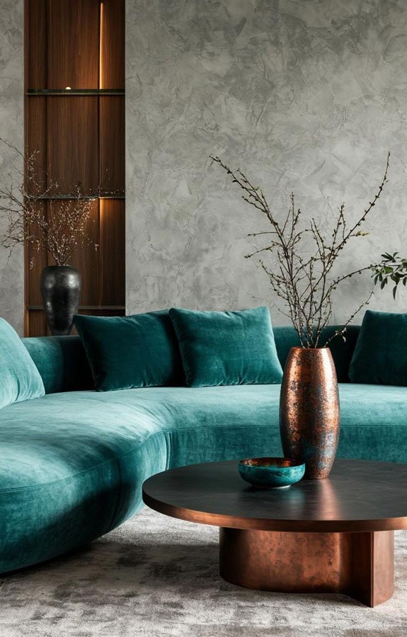Bên cạnh đó, một số màu sắc hiện đại như xanh ngọc hay vàng hổ phách được sử dụng làm điểm nhấn, tạo nên sự cân bằng giữa truyền thống và hiện đại.